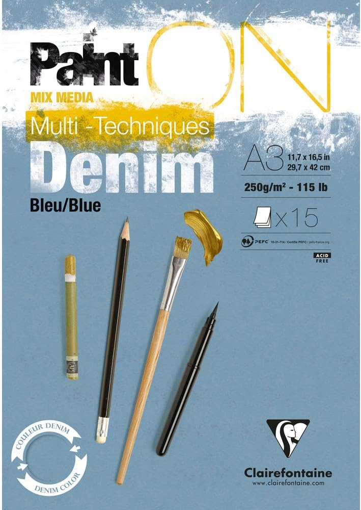 Paint'ON სახატავი პედი Denim Blue, მულტი ტექნიკა Clairefontaine 250გ/მ² A3 15 ფურცელი