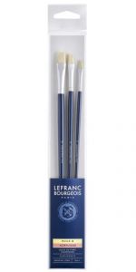 სინთეტიკური ფუნჯების ნაკრები, ბრტყელი თავით გრძელი სახელურით 4/8/12 Lefranc Bourgeois 3 ცალი