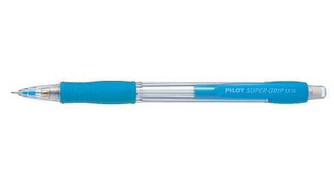 The Super Grip 0.7mm is a refillable mechanical pencil with a retractable and sliding metal sleeve for complete use of the lead - even when it breaks. Its grip has been designed for a more comfortable hold. The Super Grip 0.5mm includes an integrated eraser which is protected by a clear plastic cone.