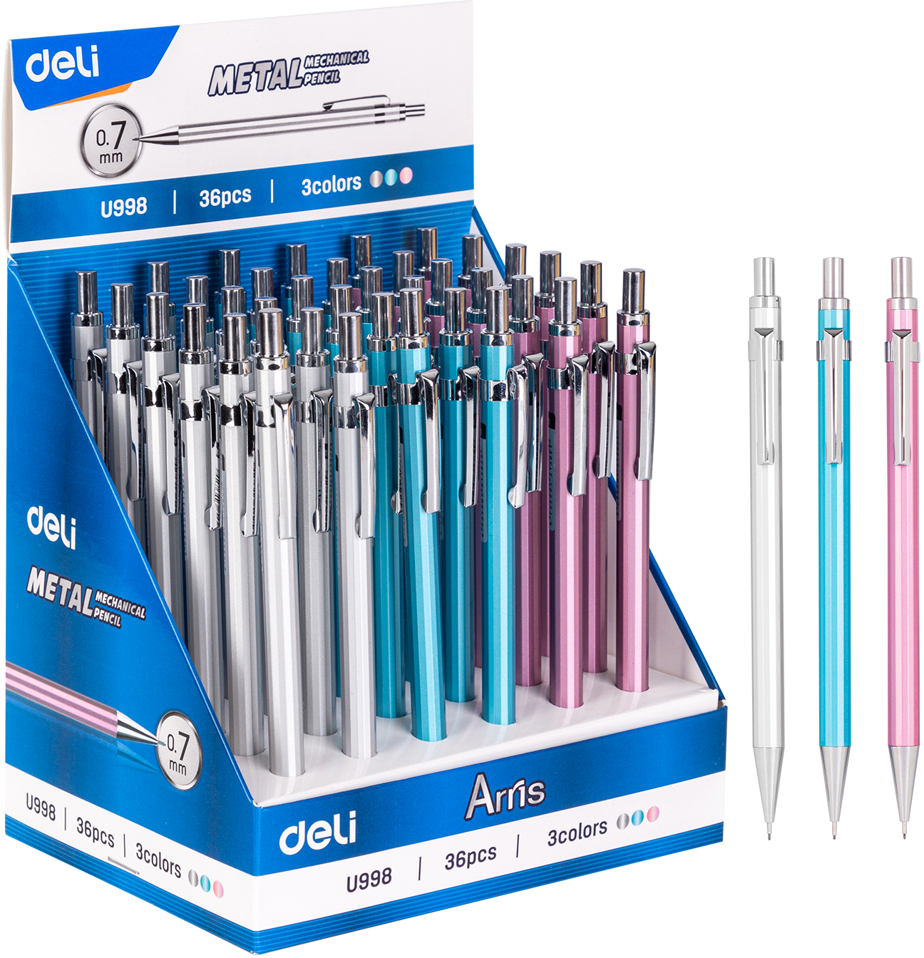 მექანიკური ფანქარი მეტალის კორპუსით Deli 0.7მმ წვერით