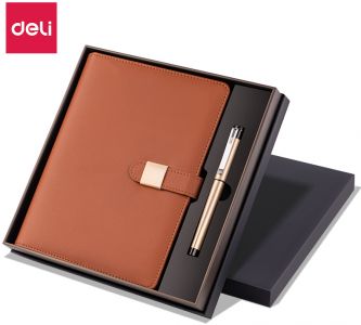 ბიზნეს ორგანაიზერი კალმით და ცვლადი ფურცლებით, ხაზი Deli 185x235x34მმ 80გ/მ² 100 ფურცელი