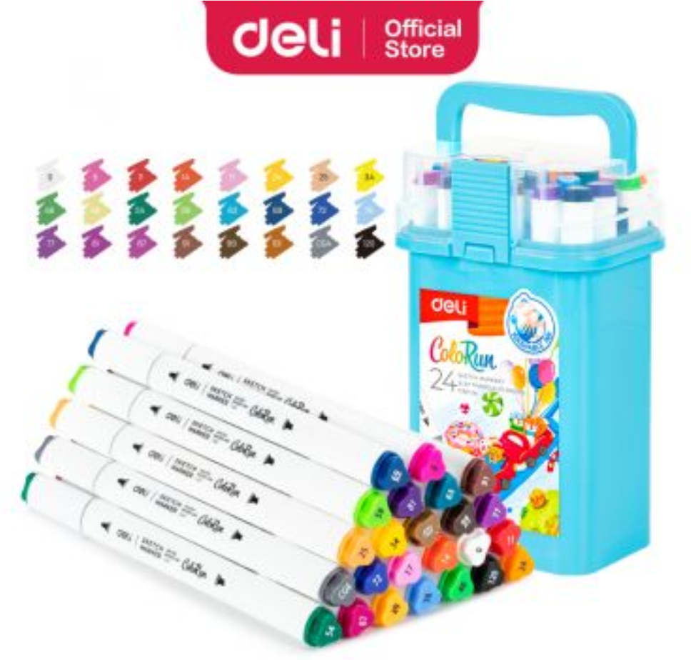 სკეჩ მარკერი ორმხრივი წვერით Deli 24 ფერი