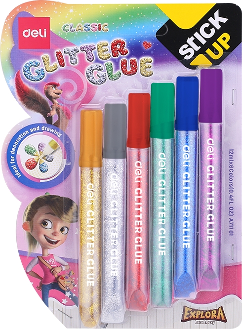 ბრჭყვიალა წებო კლასიკური ფერები Deli Stick Up 6 ფერი