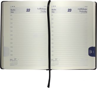 ყოველდღიური ბლოკნოტი A5; 2026 წლის, ტყავის რბილი ყდით,რეზინის შესაკრავით - ლურჯი