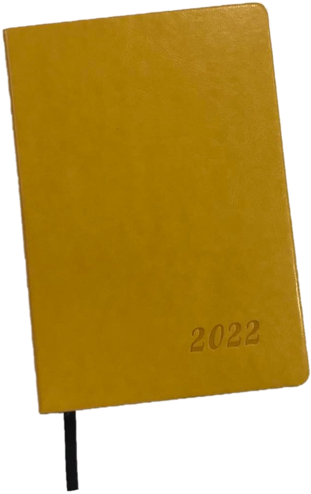 ყოველდღიური ბლოკნოტი A5; 2026 წლის, ტყავის ყდით, ქართულ-ინგლისური Helio - ყვითელი