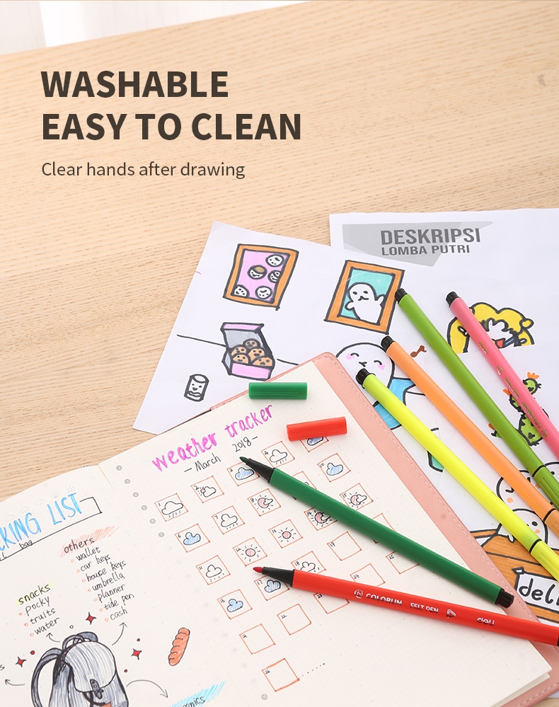 ფლომასტერი რბილი წვერით Deli 12 ფერი