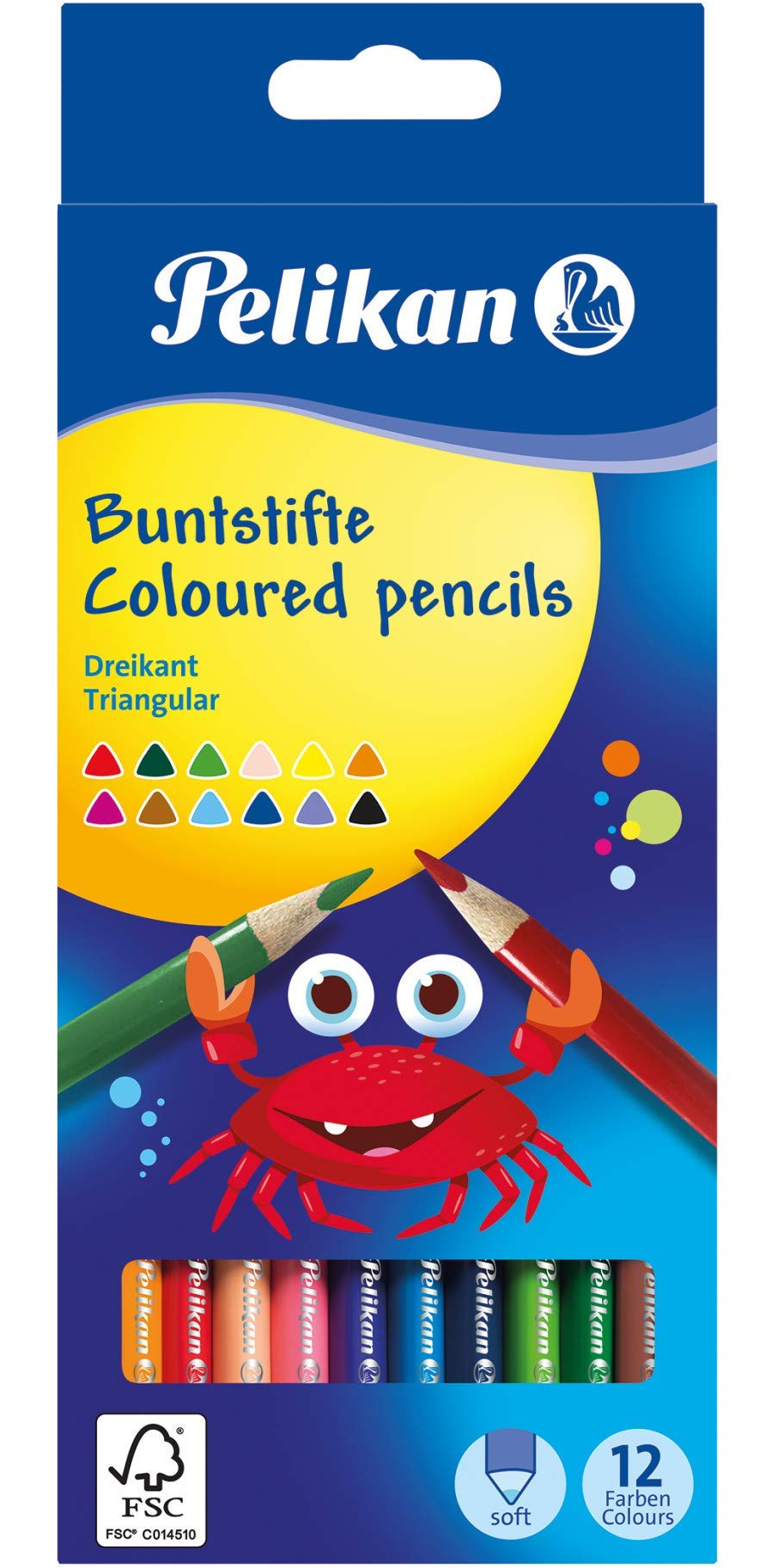 ფერადი ფანქრები სამკუთხედი კორპუსით, 3მმ წვერით Pelikan 12 ფერი