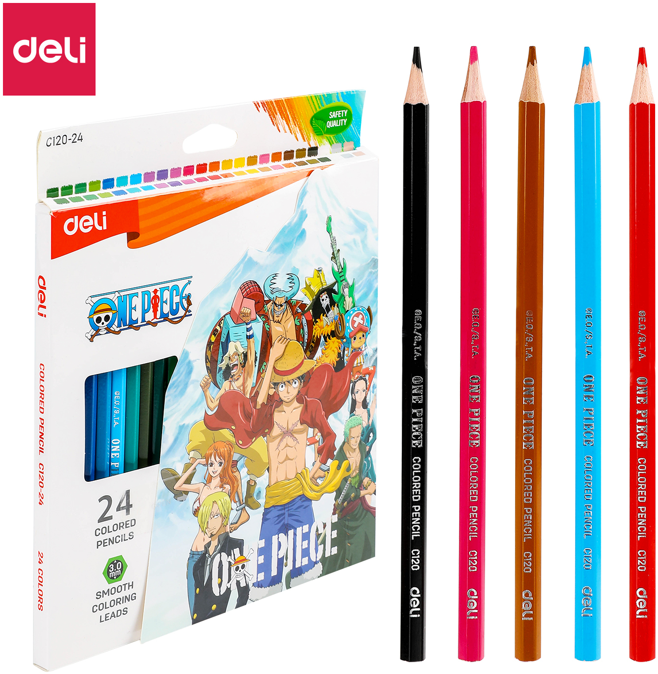 ფერადი ფანქრები, ექვსწახნაგოვანი წაკვეთილი თავით Deli 3მმ წვერით 24 ფერი