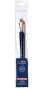 ბრტყელი სინთეთიკური ფუნჯების ნაკრები 8/16/24 მოკლე სახელურით Lefranc Bourgeois 3 ცალი