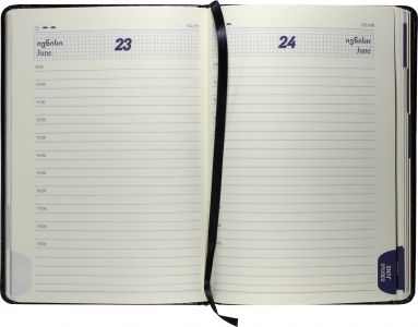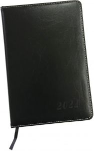 ყოველდღიური ბლოკნოტი A5; 2026 წლის, ტყავის რბილი ყდით,რეზინის შესაკრავით - ლურჯი