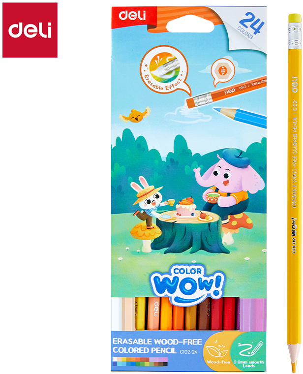 შლადი ფერადი ფანქრები ხისფერი კორპუსით Deli 24 ფერი
