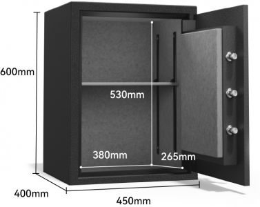 სეიფი, გაღება-დაკეტვის 2 მეთოდით: გასაღებზე და ელექტრონული Deli 35x25x25სმ 12კგ