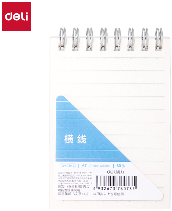 ზამბარიანი ბლოკნოტი, ხაზი Deli 70გ/მ² A7 80 ფურცელი