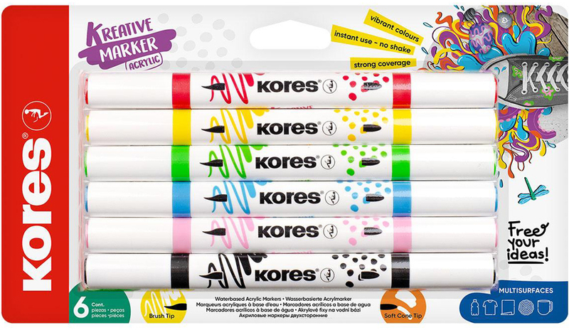 აკრილის ორმხრივი მარკერები Kores 6 ფერი