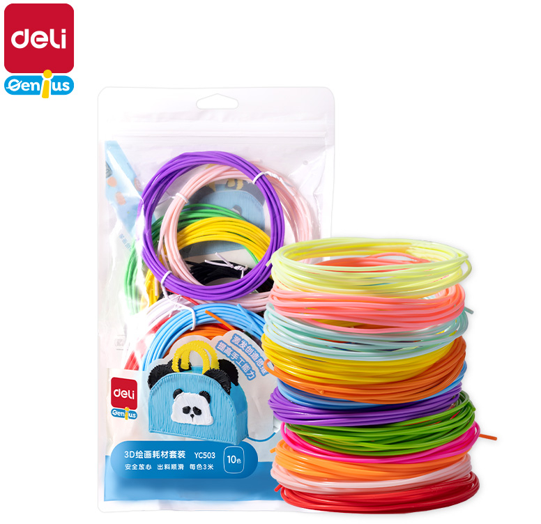 3D კალმის ნაკრები სახარჯი მასალით ( 5 ფერი/10 მეტრი) Deli (ფერი შეიძლება განსხვავდებოდეს)